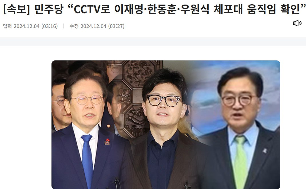 21.12 В Южной Корее издали ордер на арест лидера оппозиционной Демократической партии Ли Чже Мена, лидера партии «Сила народа» Хан Дон Хуна и спикера парламента Ву Вон Сика.