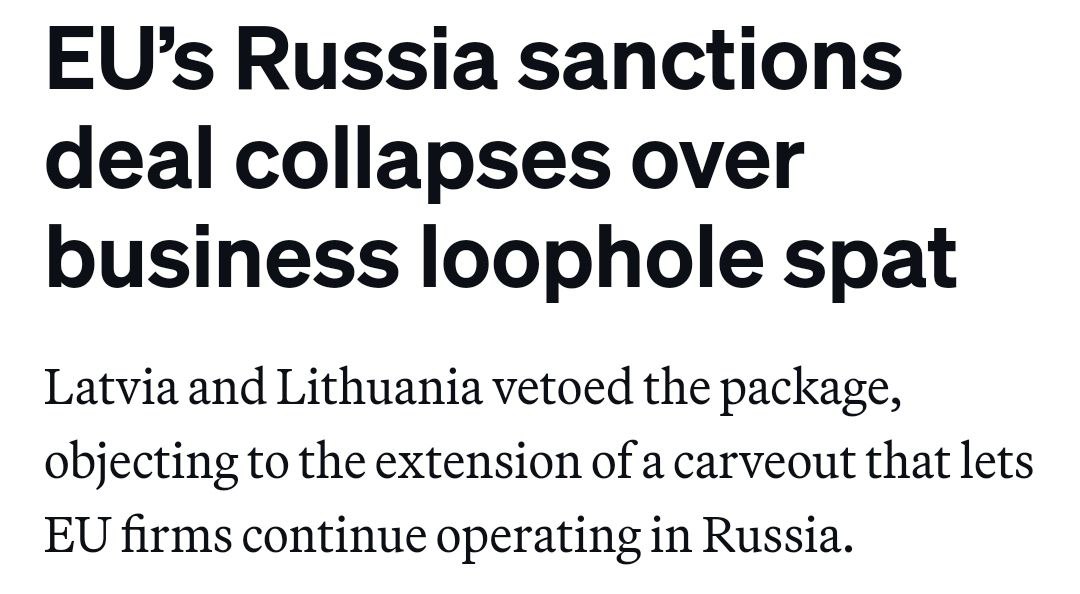 Латвия и Литва заявили, что "эта лазейка используется не по назначению и дает компаниям слишком много политического прикрытия, чтобы оставаться в России".