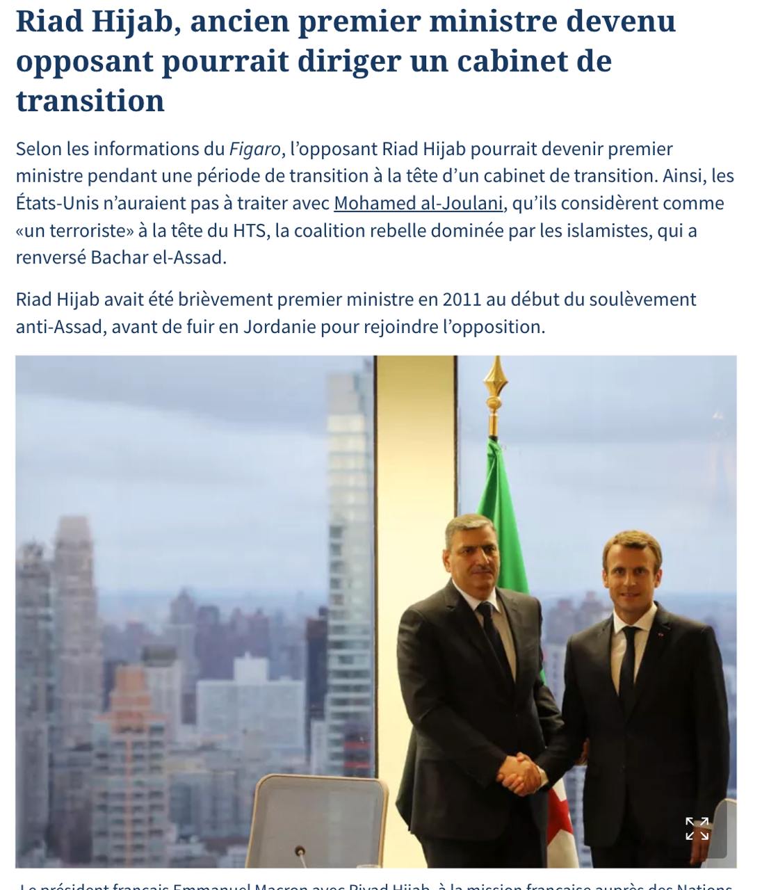 В случае назначения Хиджаба "Соединенным Штатам не придется иметь дело с Мохаммедом аль-Джулани, которого они считают террористом", пишет Le Figaro.