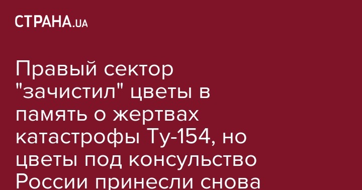 Правый сектор "зачистил" цветы в память о жертвах катастрофы Ту-154, но цветы под консульство России принесли снова