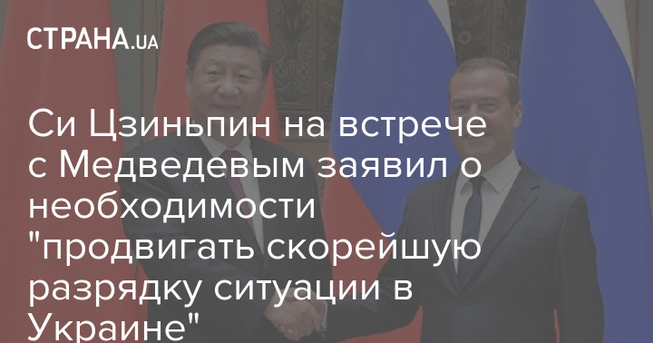 Глава Китая Си Цзиньпин на встрече с заместителем главы Совбеза России Дмитрием Медведевым заявил о необходимости "продвигать скорейшую разрядку ситуации в Украине".
