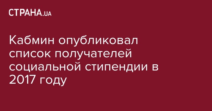 Кабмин опубликовал список получателей социальной стипендии в 2017 году