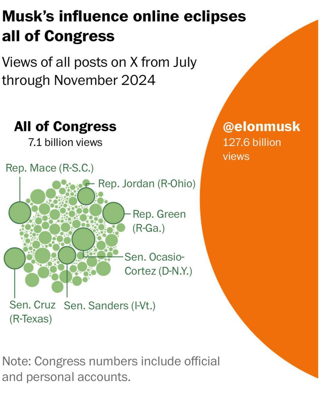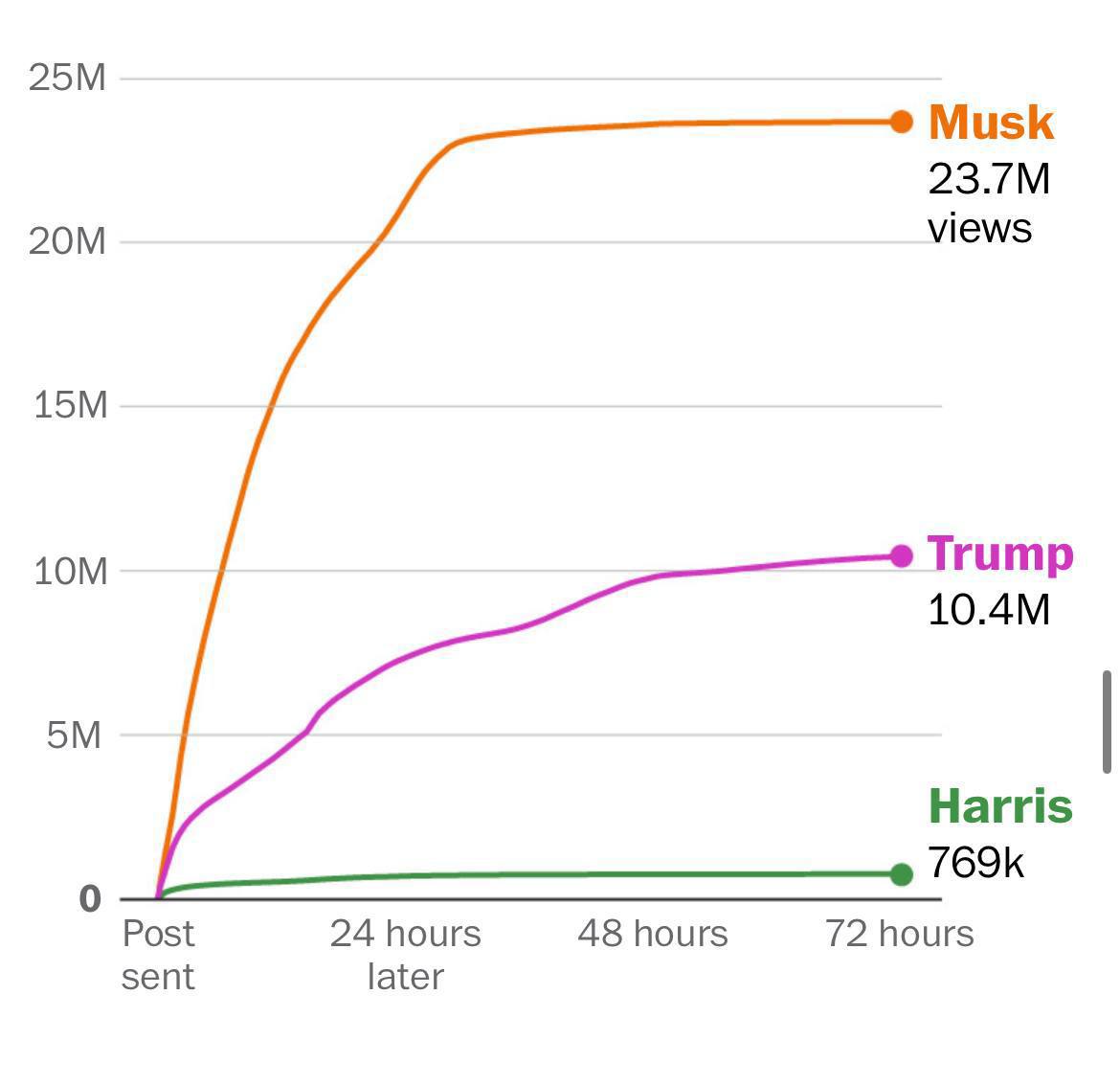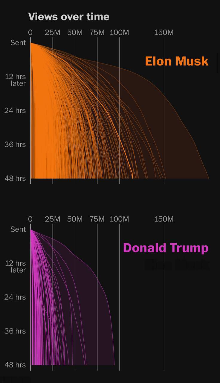 По информации издания, с июля 2024 года публикации Илона Маска в социальной сети X набрали 133 млрд просмотров – в 15 раз больше, чем у Трампа, и в 16 раз больше, чем суммарный охват аккаунтов нового состава американского Конгресса.