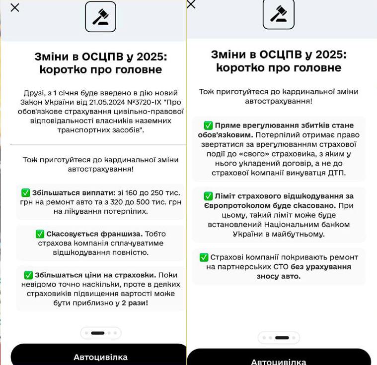 Изменения связаны со вступлением 1 января 2025 года в силу новой редакции закона "Об обязательном страховании гражданско-правовой ответственности владельцев наземных транспортных средств", принятого летом.