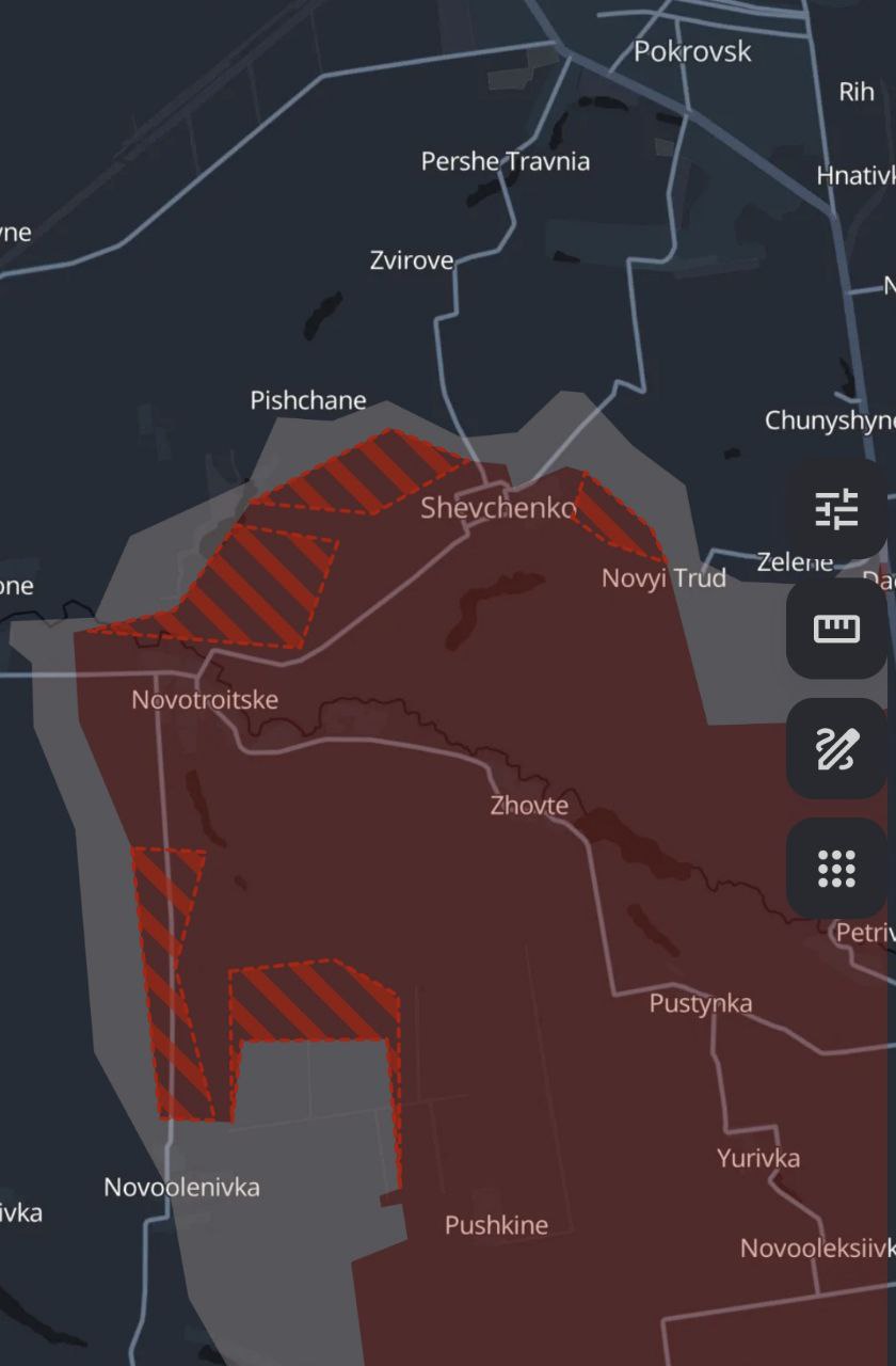 Россияне за минувшие сутки продвинулись под Покровском Донецкой области, войдя в село Песчаное (из которого раньше контратаковали ВСУ).