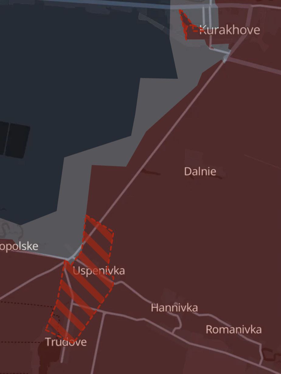 К югу от Курахово россияне захватили Успеновку, о чем вчера писали российские паблики.