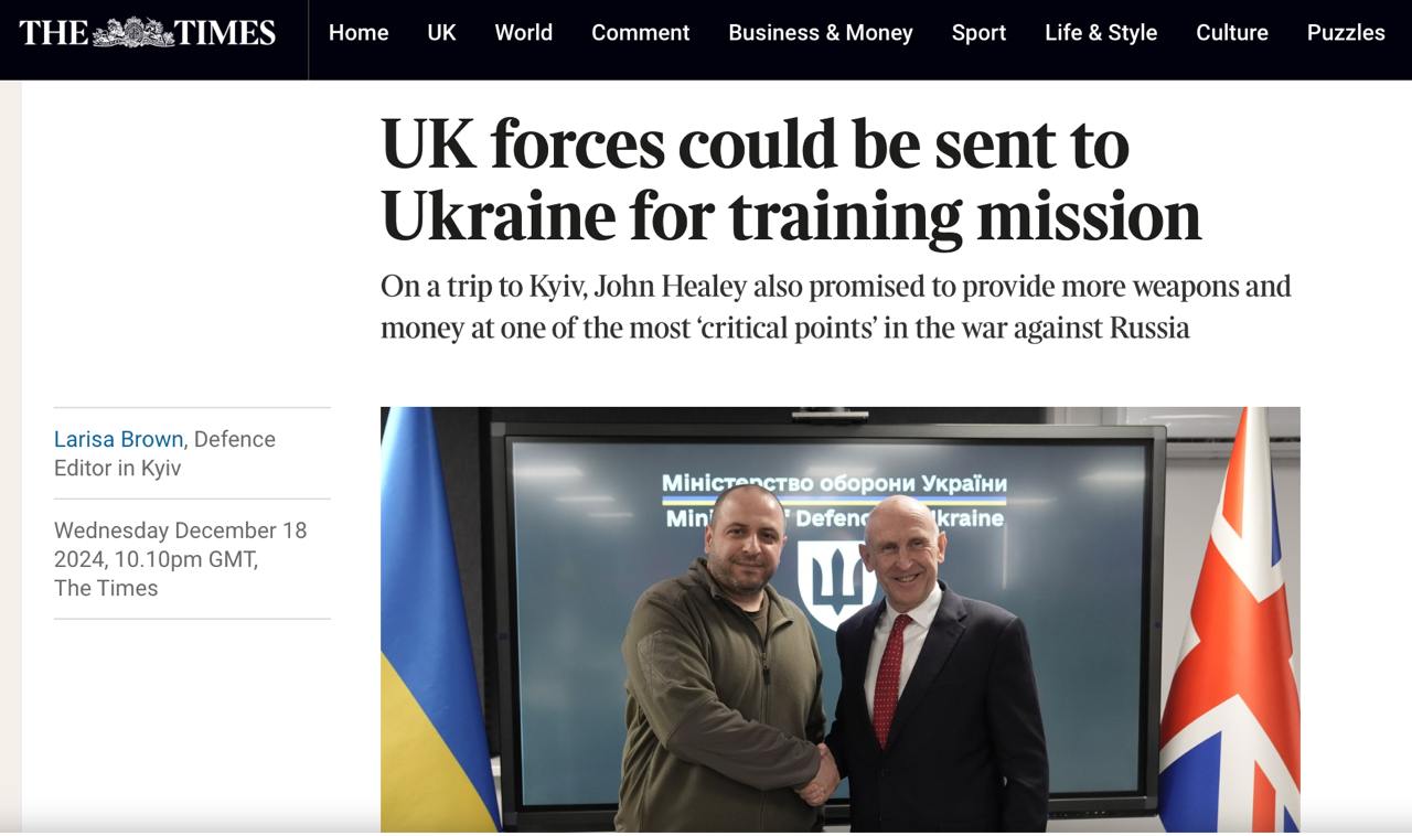 Министр обороны страны Джон Хили в ходе визита в Киев 18 декабря сказал, что Лондону необходимо "сделать обучение более соответствующим потребностям украинцев". На вопрос, означает ли это отправку инструкторов в Украину, он ответил обтекаемо, но дал понять, что такой вариант не исключен.