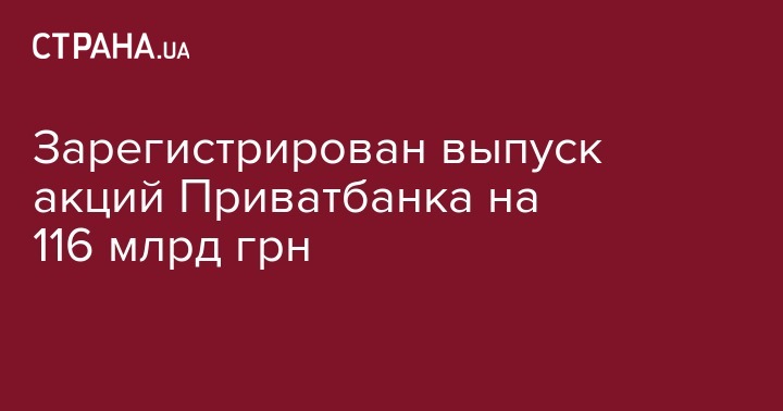 Зарегистрирован выпуск акций Приватбанка на 116 млрд грн