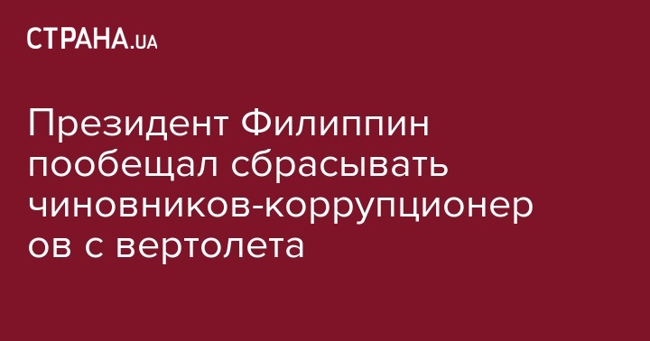 Президент Филиппин Родриго Дутерте публично пообещал "сбрасывать коррумпированных филиппинских чиновников с вертолета на полпути к Маниле (столица Филиппин)". Об этом сообщает издание The Philippine Star.