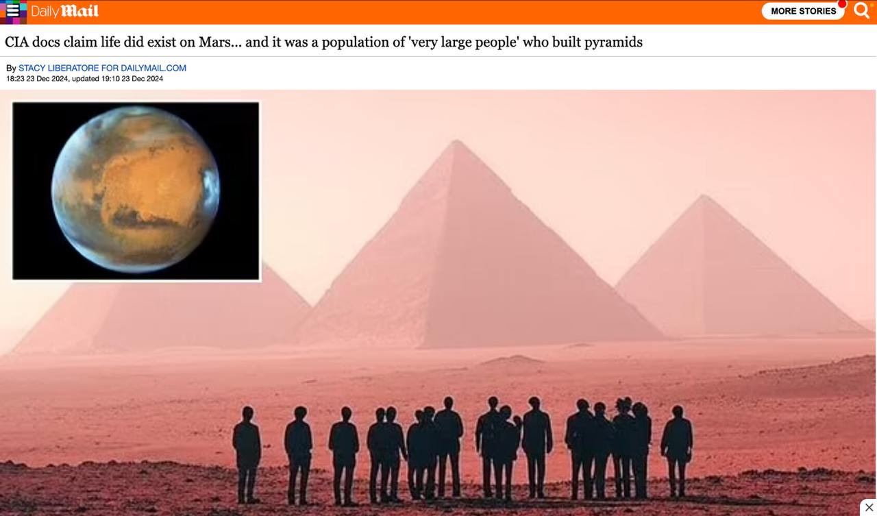 В отчете американского Центрального разведывательного управления говорится, что на Марсе существовала жизнь, а пирамиды на красной планете строили великаны.