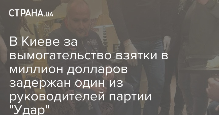 Служба безопасности Украины заявила о задержании в Киеве одного из руководителей известной партии, подозреваемого в вымогательстве миллиона долларов взятки у предпринимателя за решение земельных вопросов в Киевской городской госадминистрации. По данным СМИ, речь идет о руководителе партии мэра Киева Виталия Кличко "Удар" в Одесской области Александре Суханове.