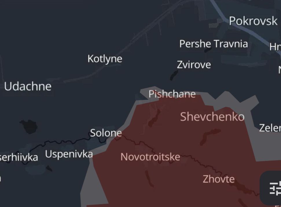 16:24 Российские войска продвинулись к юго-западу от Покровска (Новоелизаветовка и Нововасильевка), к западу от Курахово (в Шевченко), к трассе восточнее Мирнограда (Воздвиженка) и в Торецке, а также южнее города.