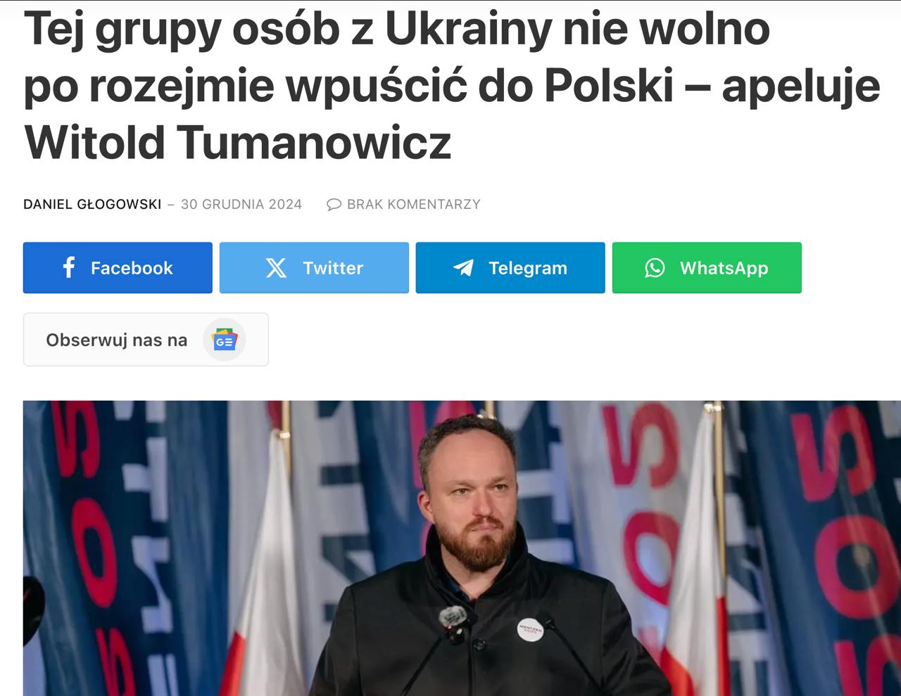 Об этом заявил депутат Конфедерации Витольд Туманович в эфире Polsat News.