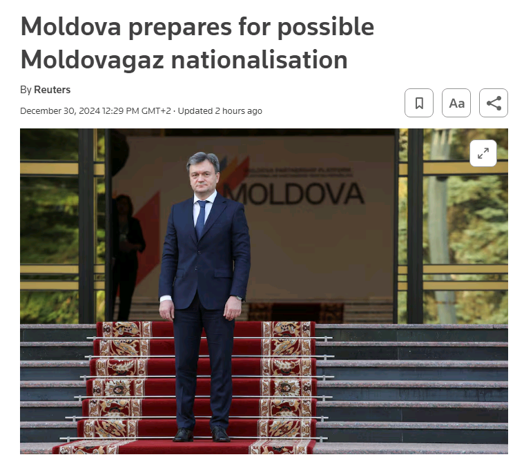 В Молдове хотят национализировать активы компании "Молдовагаз", контрольный пакет которой в 50% принадлежит российскому "Газпрому". Премьер-министр страны Дорин Речан распорядился подготовить для этого законодательную базу.