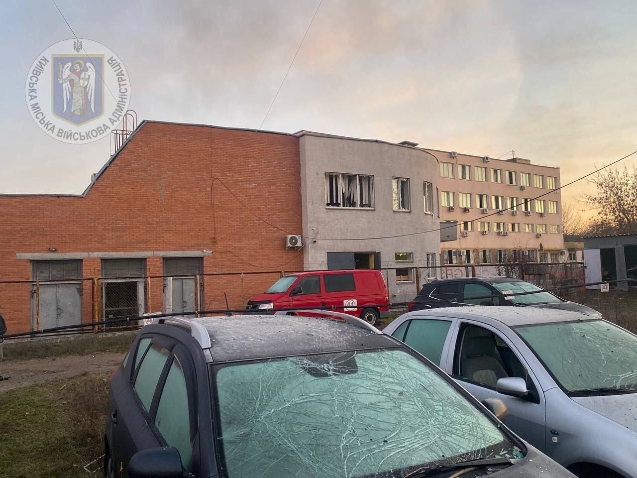 В Святошинском районе в результате падения обломков произошел пожар в нежилом помещении, повреждены окна, забор. Также частично поврежден трамвайный путь.
