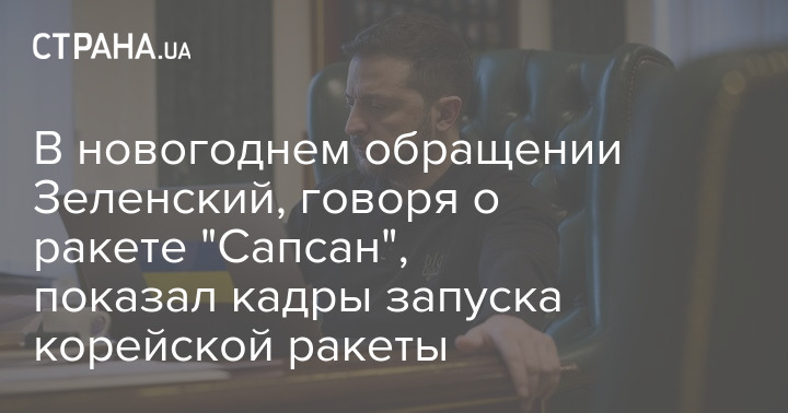 Кадры из новогоднего обращения президента Украины Владимира Зеленского, в которых он говорит об украинской баллистической ракете "Сапсан", являются видеозаписями пуска южнокорейских ракет.