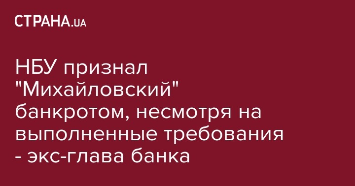 НБУ признал "Михайловский" банкротом, несмотря на выполненные требования - экс-глава банка