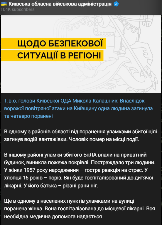 Киевскую область атаковали "Шахеды". Погиб мужчина, еще четыре человека получили ранения