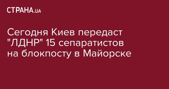 Стали известны подробности сегодняшней передачи Киевом 15 человек, которые представили для освобождения т. н. "ДНР" и "ЛНР". Как сообщил агентству "Интерфакс-Украина" источник, близкий к переговорному процессу, передача состоится в районе Майорска.