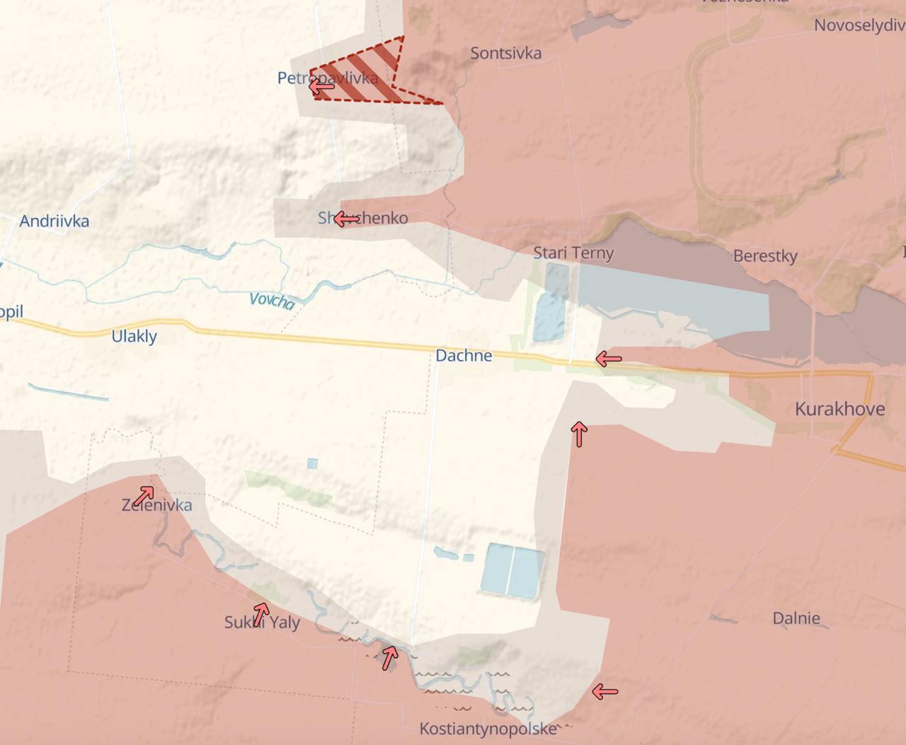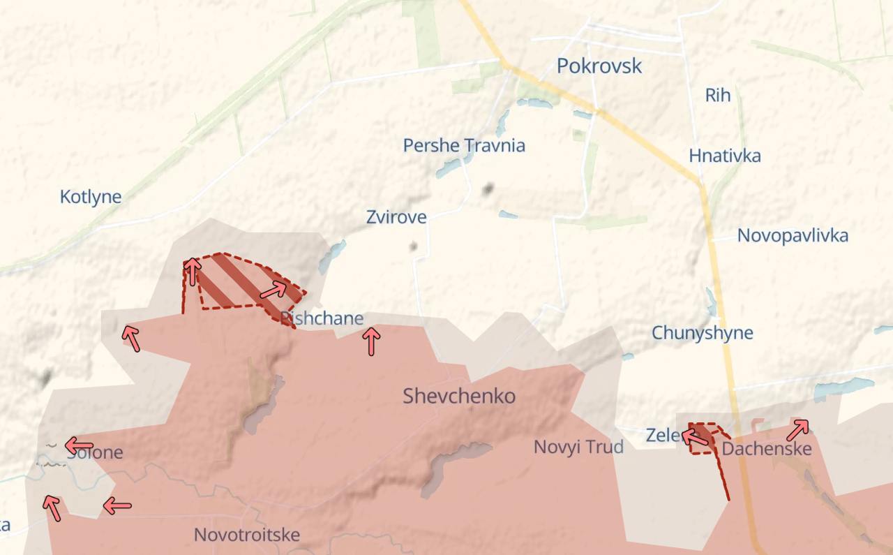В Донецкой области россияне вчера продвинулись в Торецке, в районе Воздвиженки у трассы Покровск-Константиновка, под самим Покровском, а также в Петропавловке к западу от Курахово.