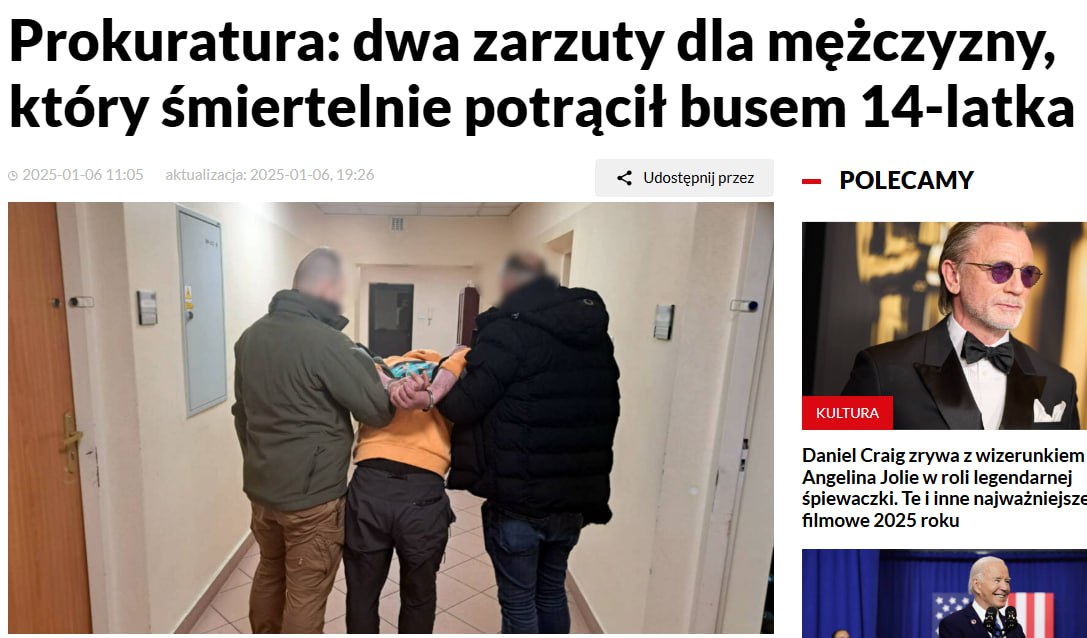 Как пишет PAP, автобус сбил подростка на пешеходном переходе в пятницу, 3 января, около 17:15. Водитель не оказал парню медицинскую помощь и скрылся с места происшествия.