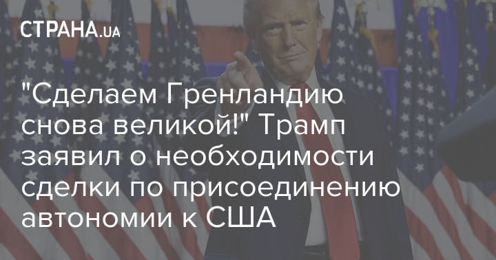 Избранный президент США Дональд Трамп заявил о необходимости "сделки" по присоединению Гренландии к Штатам.