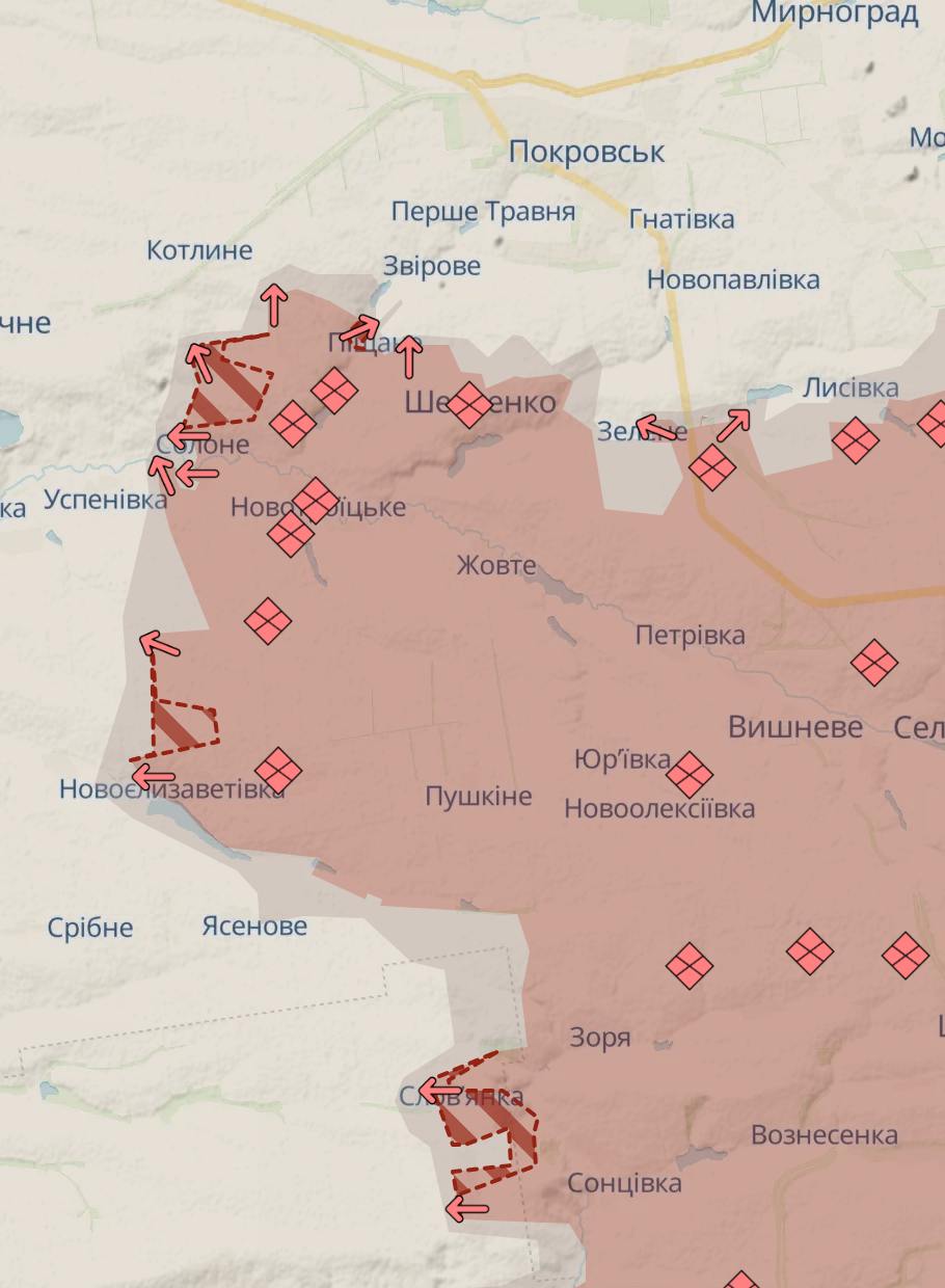 Под Покровском у РФ продвижение юго-западнее, в сторону Удачного, и восточнее, в сторону трассы на Константиновку.