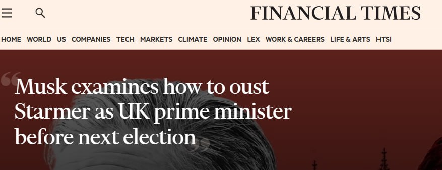 Издание пишет, что миллиардер не только публикует провокационные посты в Х, но и изучает способы дестабилизации лейбористского правительства с помощью своих союзников. Он рассматривает поддержку других партий, включая Reform UK, однако намерен сменить её лидера Найджела Фараджа, которого считает "недостаточно компетентным" для этой роли, утверждает FT.