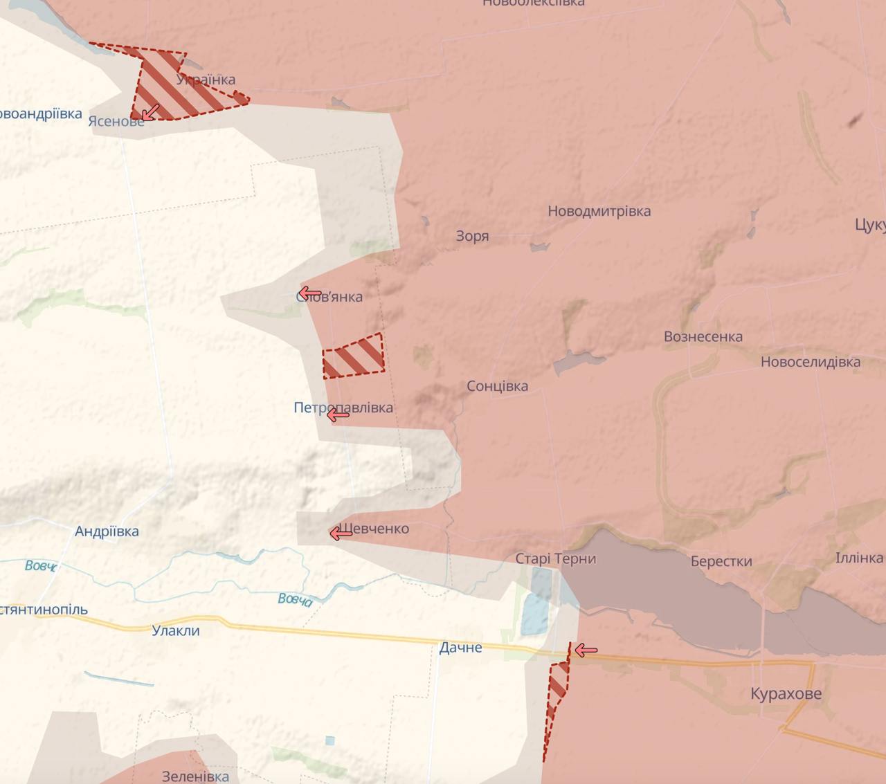 Украинский контроль утерян над Новоивановкой, Леонидово и Александрией в Курской области (последние три были фактически потеряны уже и по предыдущим картам паблика, но ситуация нуждалась в уточнении, заявляли в DS).