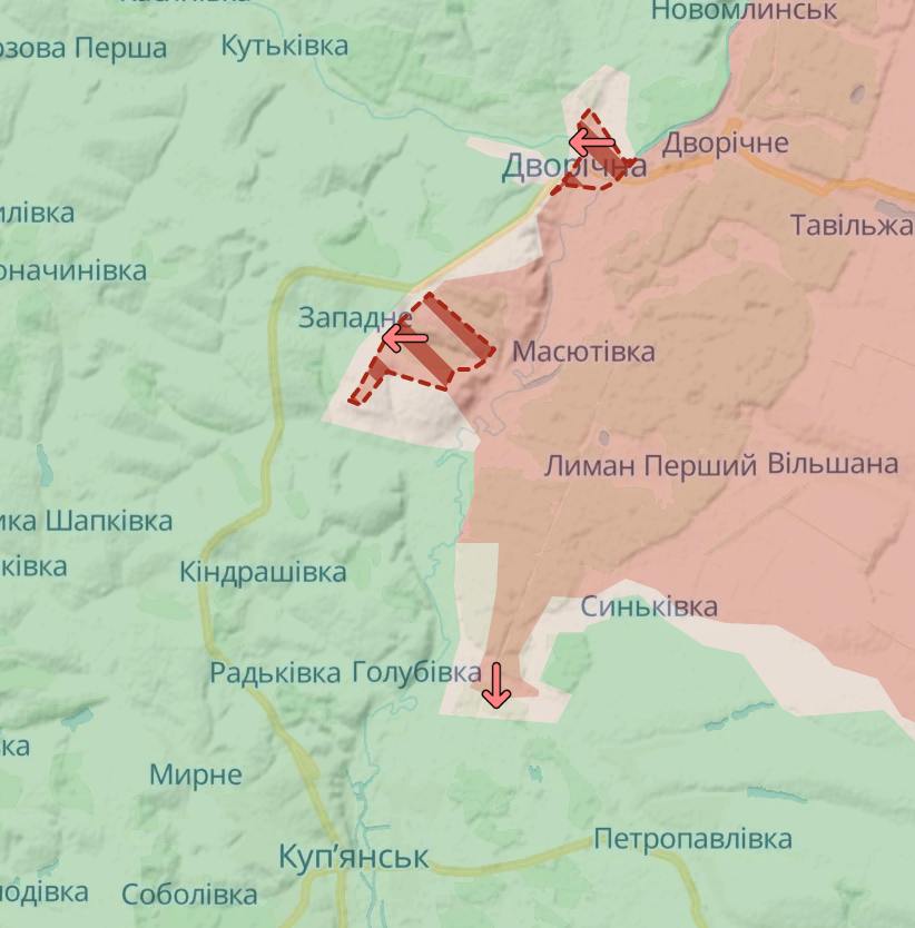 Россияне продвинулись к северу от Купянска на правом берегу реки Оскол - в Двуречной и у Западного.