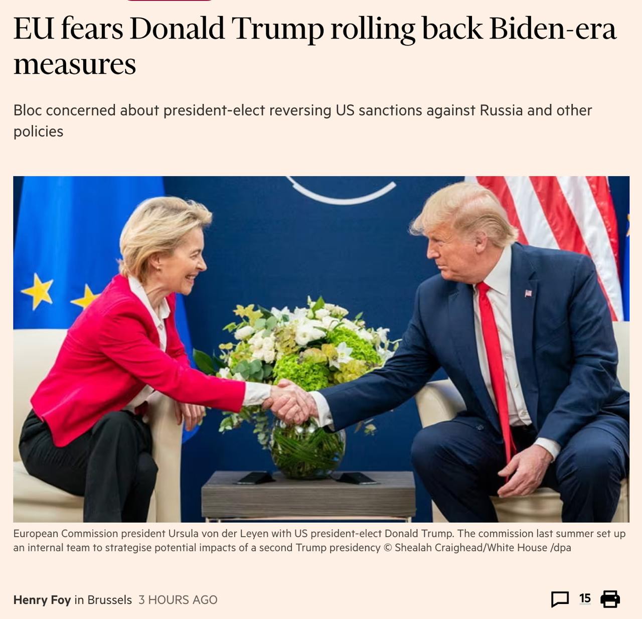 Сейчас европейцы в спешке перечитывают все указы действующего президента США Джо Байдена, чтобы понять, какой ущерб может нанести Трамп, если решит отменить все их не глядя, просто потому что их выдавал Байден.