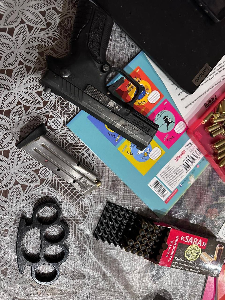 "В результате изъяли оружие, патроны, страйкбольную гранату, кастет, нож, а также компьютерную технику и мобильные телефоны", - говорится в сообщении