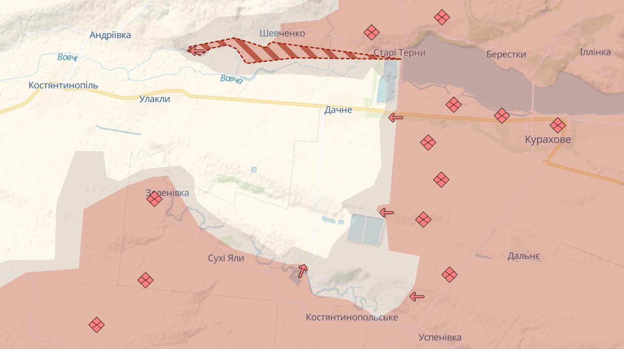 Также армия РФ продолжает продвижение под Покровском и Курахово, свидетельствует карта Deep State.