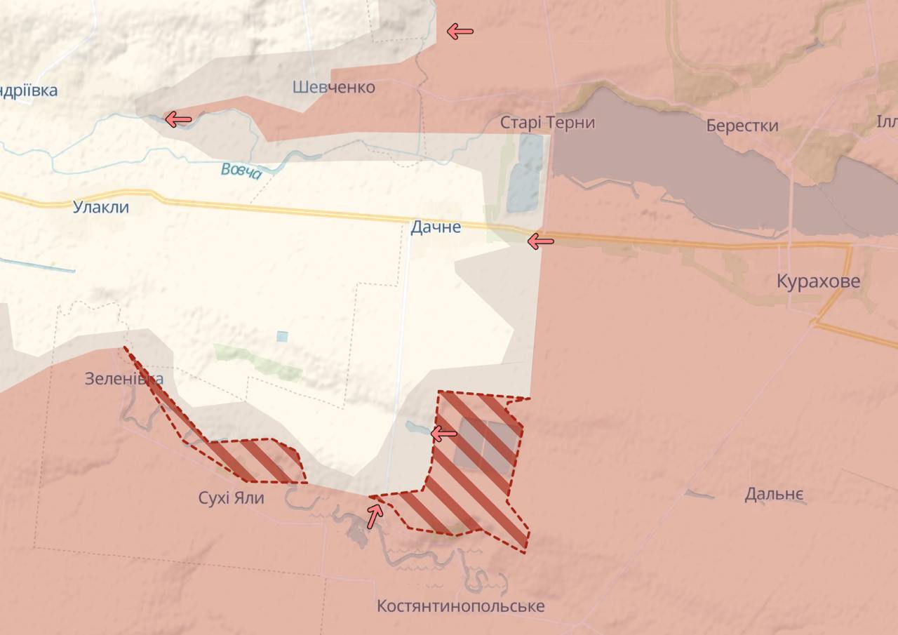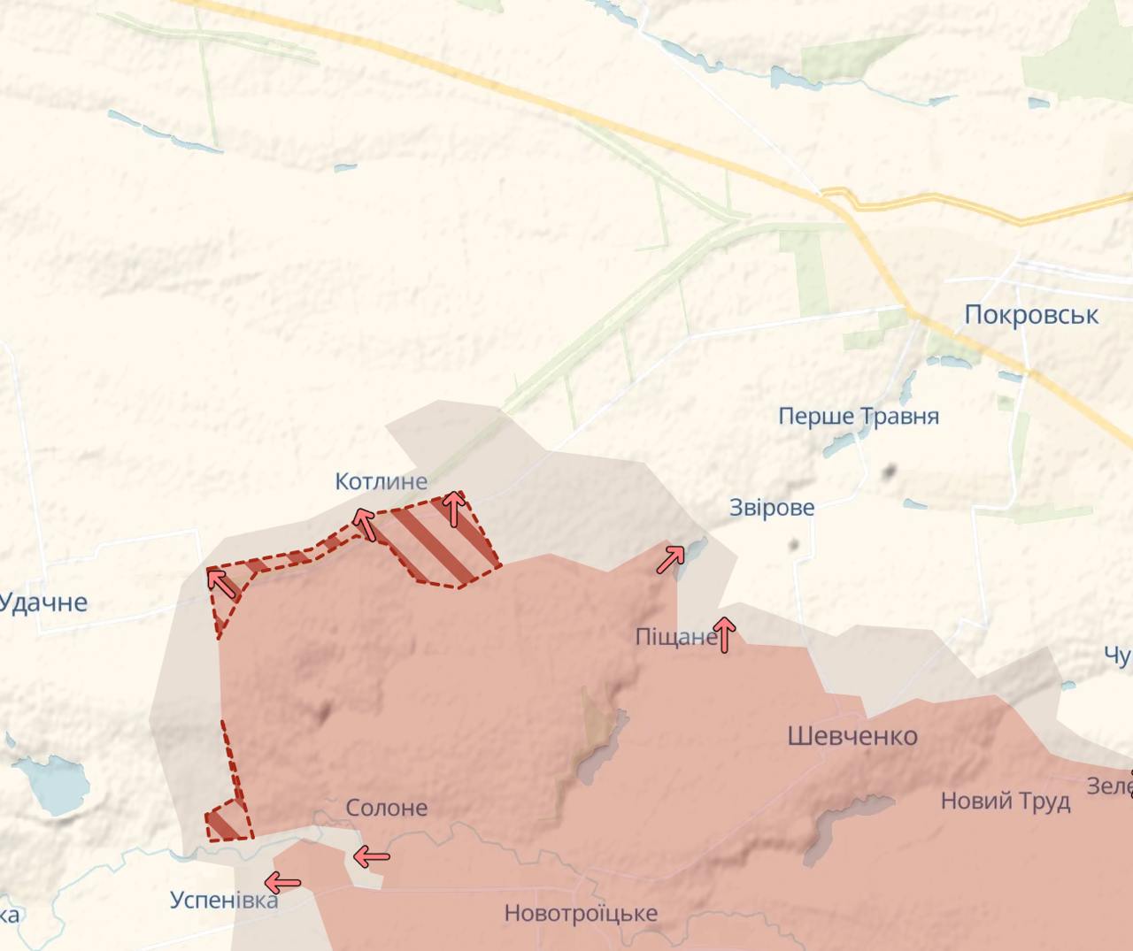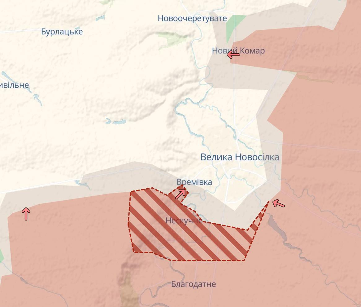 Российские войска захватили Нескучное под Великой Новоселкой в Донецкой области, продвинулись к юго-западу от Курахово и Покровска (в районе Котлино).