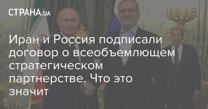 Президенты России Владимир Путин и Ирана Масуд Пезешкиан подписали договор о всеобъемлющем стратегическом партнерстве. Подписание прошло в Кремле по итогам переговоров.
