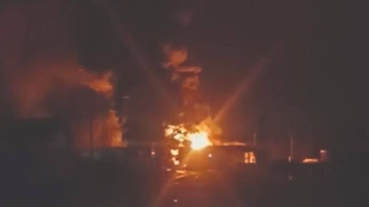 Попадание по нефтебазе в Калужской области РФ. Фото: ГУР