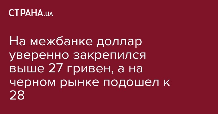 На черном рынке доллар продавали по цене выше 27,7 грн/$, а временами поступали предложения и по цене 28 грн/$.