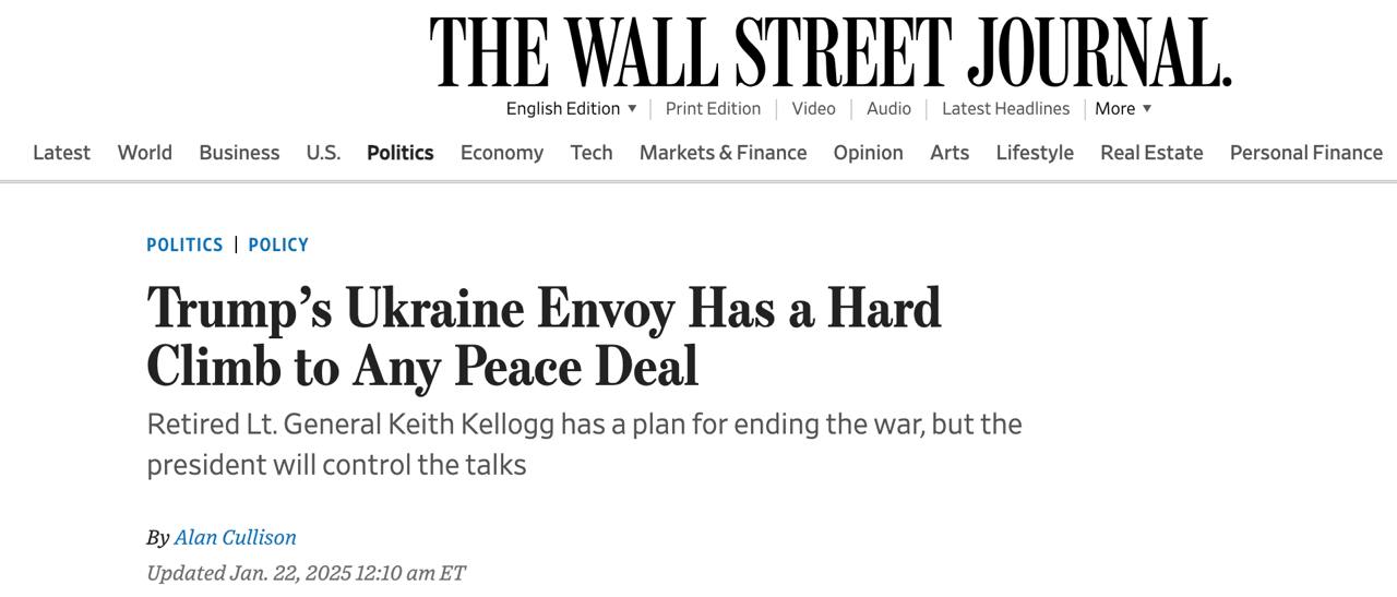 Издание пишет, что Трамп поручил Келлогу завершить войну за сто дней, но "почти никто не думает, что он сможет это сделать". Поэтому переговоры будет скорее всего на всех этапах контролировать лично президент США.