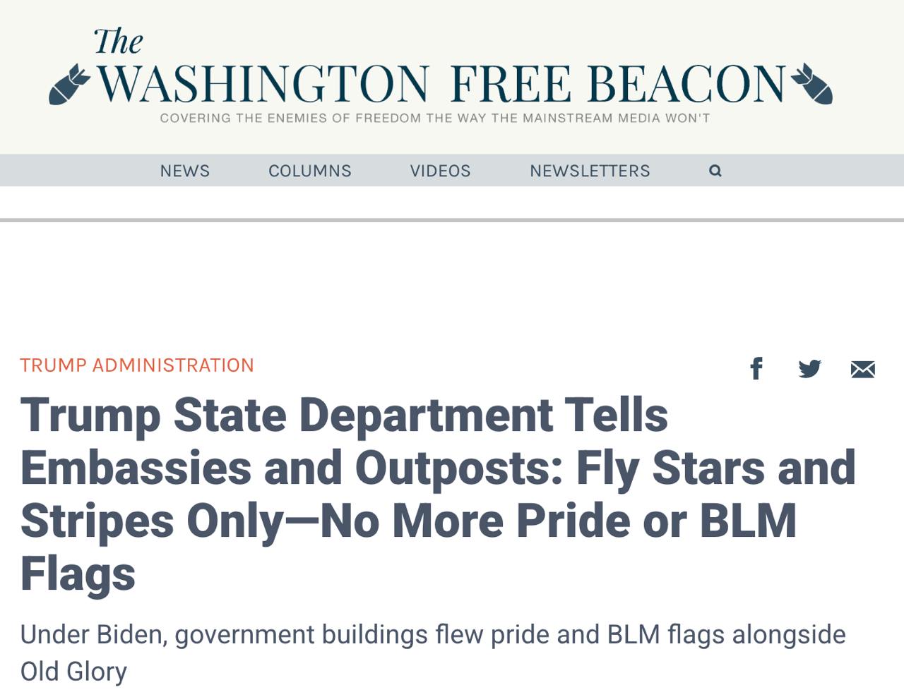А поскольку при бывшем президенте Джо Байдене часто практиковалось добавлять к ним и другие флаги вроде ЛГБТ и BLM, то медиа это трактовали именно как запрет данных символов.
