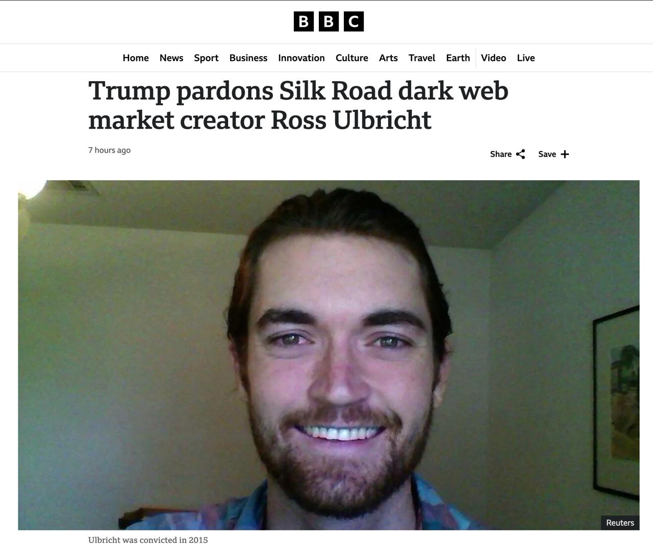 Президент США Дональд Трамп помиловал известного создателя маркетплейса наркотиков, хакерского оборудования и украденных паспортов в даркнете Silk Road Росса Ульбрихта.