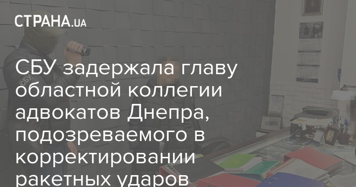 Задержан глава областной коллегии адвокатов Днепра за корректировку российских ударов. Об этом сообщает Служба безопасности Украины.