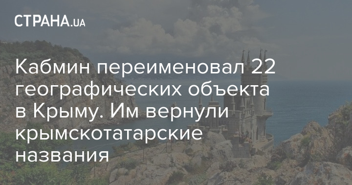 Кабмин переименовал 22 географических объекта в Крыму, который находится под контролем РФ. Большинству из них возвращены крымскотатарские названия, существовавшие до 1944 года.