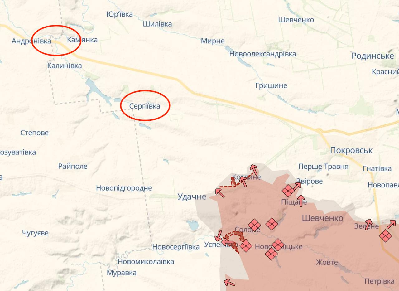 Войска РФ перерезали железную дорогу между Удачным и Котлиным и наступают в сторону Сергеевки, откуда до границы Днепропетровской области - около 3 км. До населенного пункта уже долетают ФПВ-дроны.