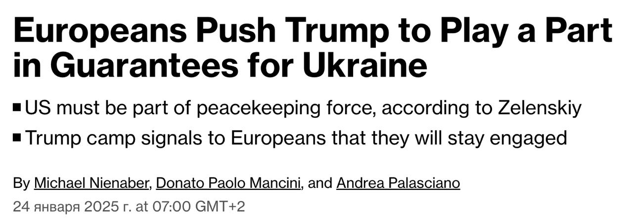 Но взамен Трамп может ожидать, что Европа возьмет на себя большую долю бремени по обеспечению любой потенциальной сделки. Европейцы понимают, что США ожидают от них предоставления основной части миротворцев, поскольку Трамп считает войну в Украине "европейским делом".