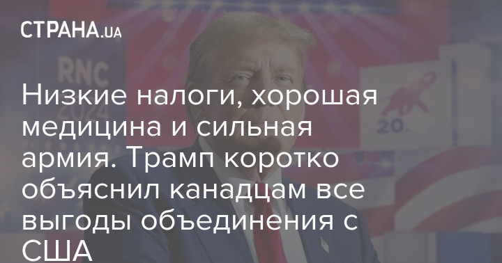 "Знаете, я бы хотел, чтобы Канада стала 51-м штатом Америки. У жителей Канады сразу бы уменьшились налоги. У них они очень высокие. Им не пришлось бы переживать об армии и о многих других вещах. У них стала бы лучше система здравоохранения", - сказал президент США.