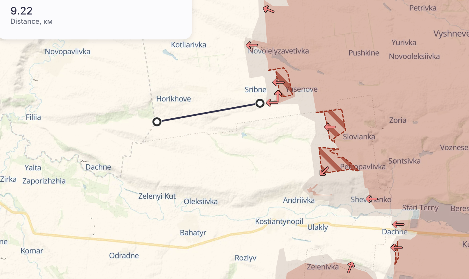 Также заметно, что между Покровском и Курахово россияне движутся и непосредственно к границе Днепропетровской области - со стороны Срибного и Новоандреевки. Там до границ региона осталось менее десяти километров. Куда могут россияне двинуться из Донбасса, мы разбирались здесь.
