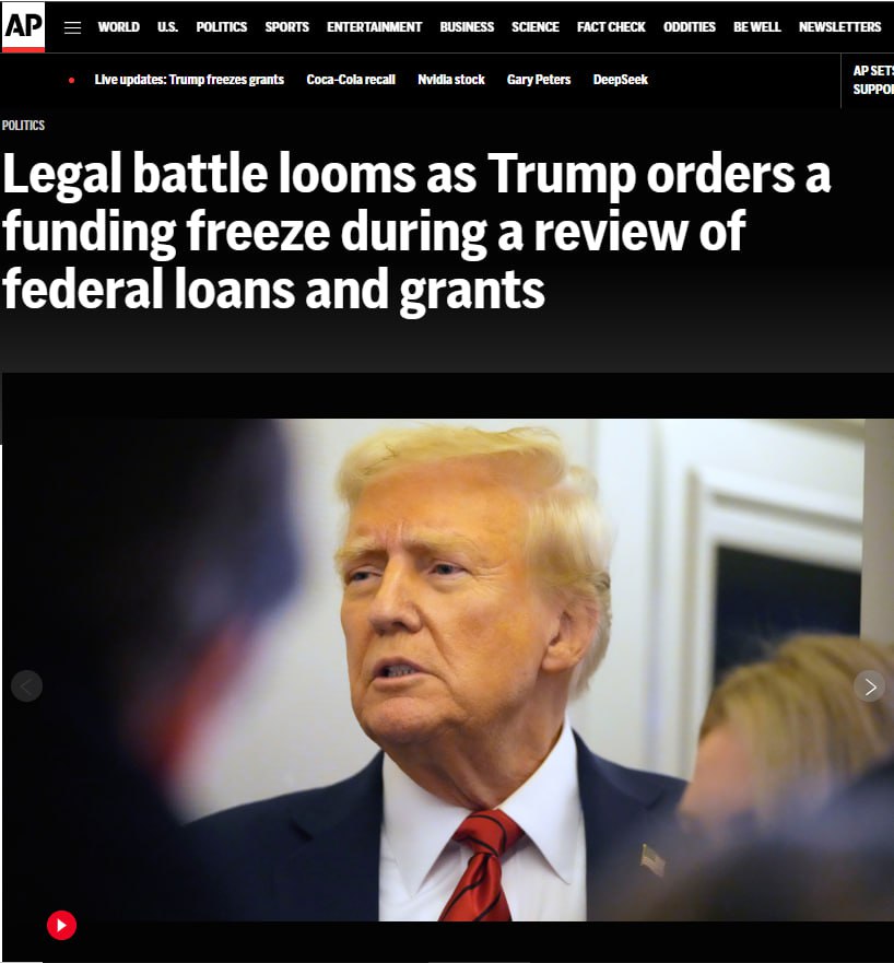 После прекращения помощи другим странам Белый дом остановил федеральные гранты и займы в США - AP