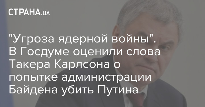 Глава Государственной думы РФ Вячеслав Володин заявил об "угрозе ядерной войны" после интервью американского журналиста Такера Карлсона, где тот сообщил о попытке покушения на российского лидера Владимира Путина.