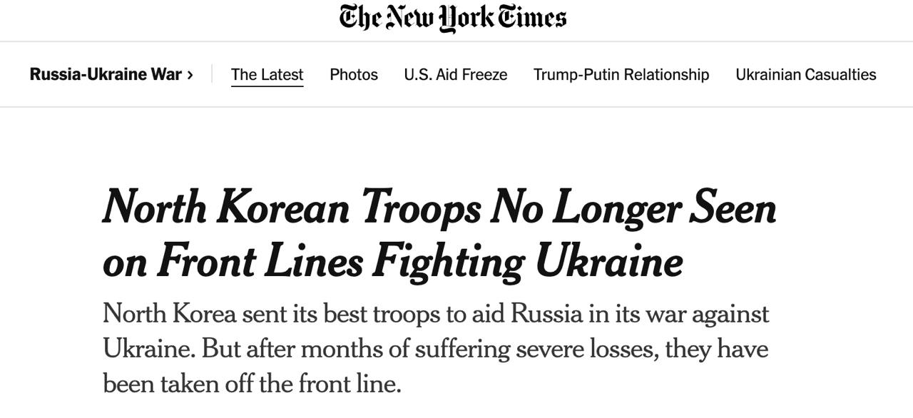 Северокорейских военных отозвали с линии фронта в Курской области РФ из-за больших потерь. Об этом сообщает The New York Times со ссылкой на украинских и американских официальных лиц.