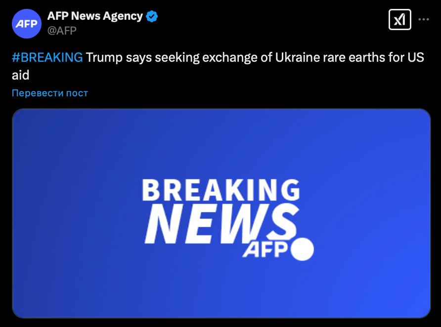 Президент Соединенных Штатов Дональд Трамп заявил, что намерен обменять редкоземельные металлы Украины на помощь США.